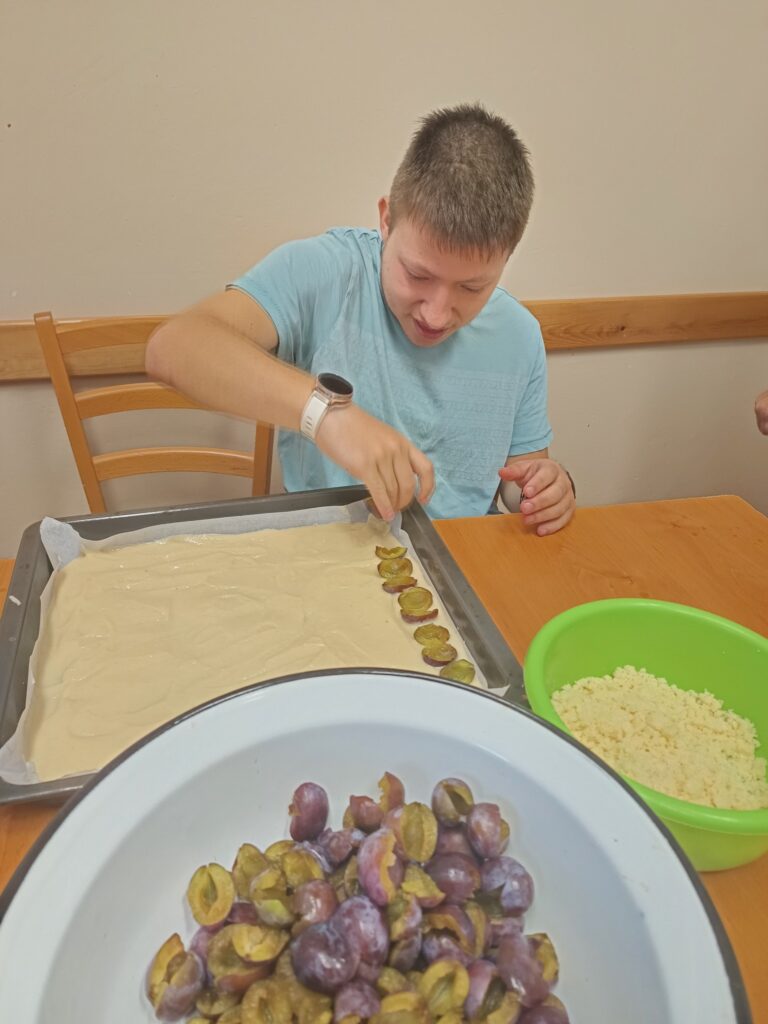 Sklidili jsme švestky, jablka, dýně a cukety a proměnili je v samé dobroty. V naší cvičné kuchyňce voněla dýňová polévka, křupaly cuketové placky a na sladký závěr jsme si pochutnali na jablkových muffinech. Největší úspěch ale sklidil švestkový koláč. Jeho vůně byla tak lákavá, že k nám tradičně zavítal i pan školník.