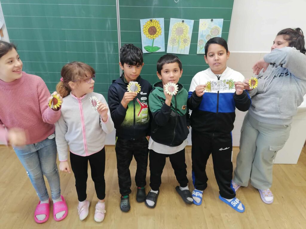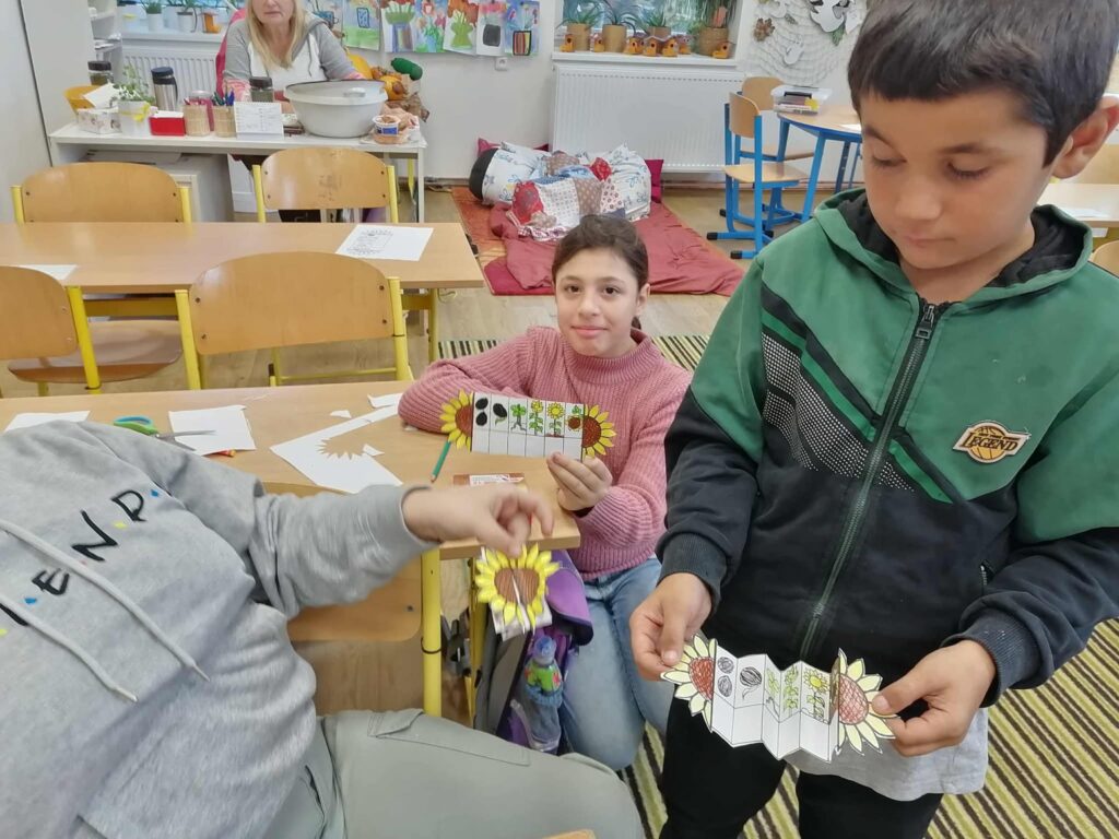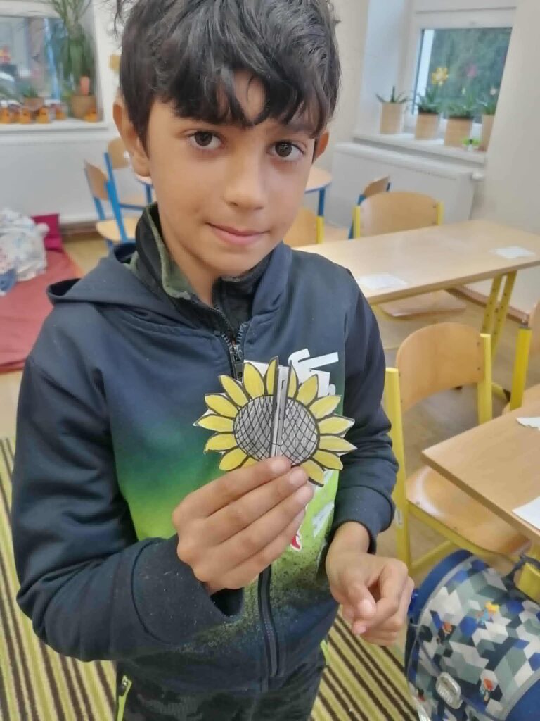 Pak jsme si povídali o tom, jak ze semínka taková rostlina vyroste a vyrobili si krásné slunečnice se schovaným příběhem.