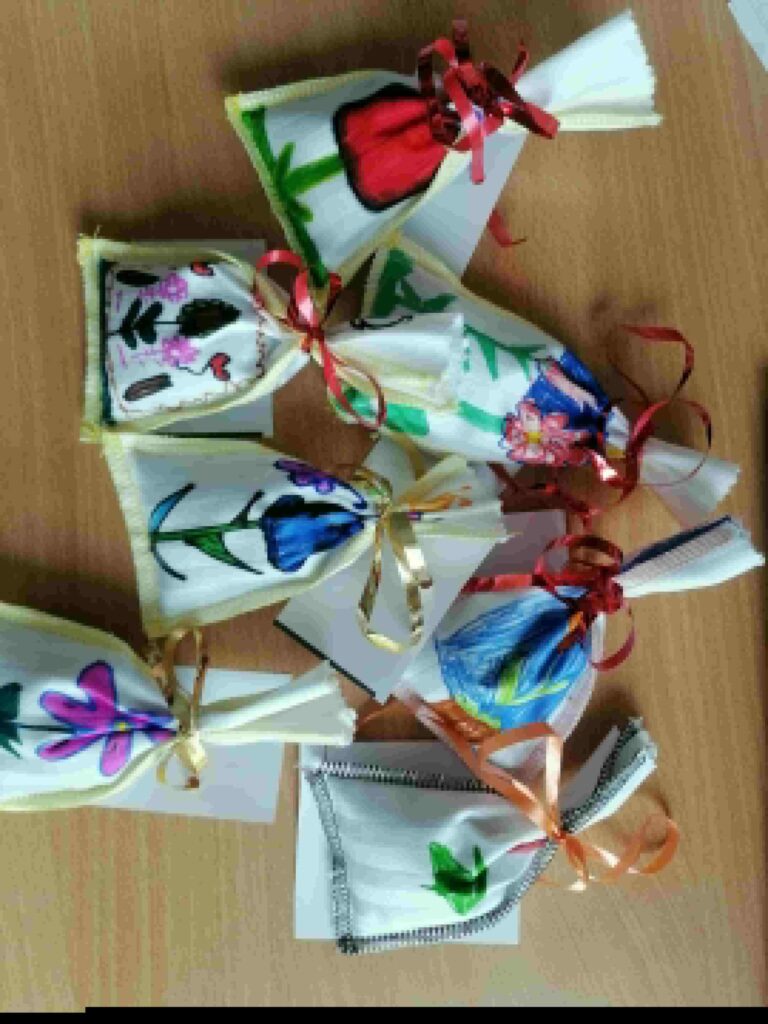 Pro sušené voňavé koření si žáci ozdobili látkový sáček.