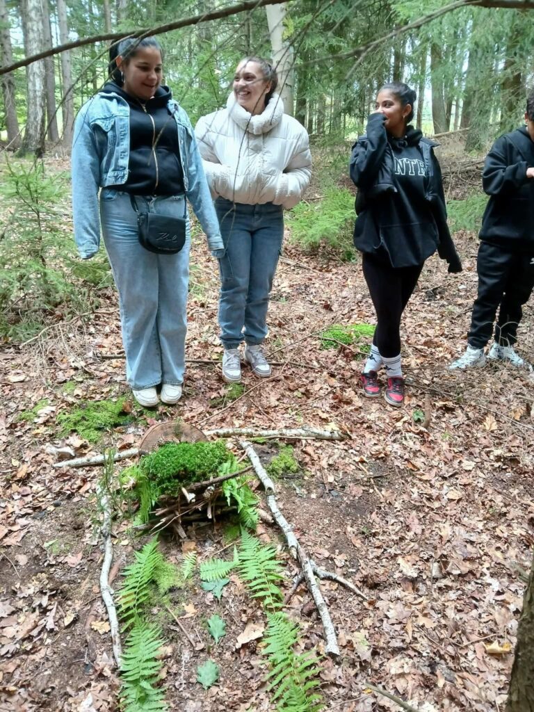 První den projektu byl ve znamení seznámení a tvořivosti – žáci společně vytvořili mandalu a vydali se do lesa, kde stavěli z přírodnin malá obydlí pro zvířátka.