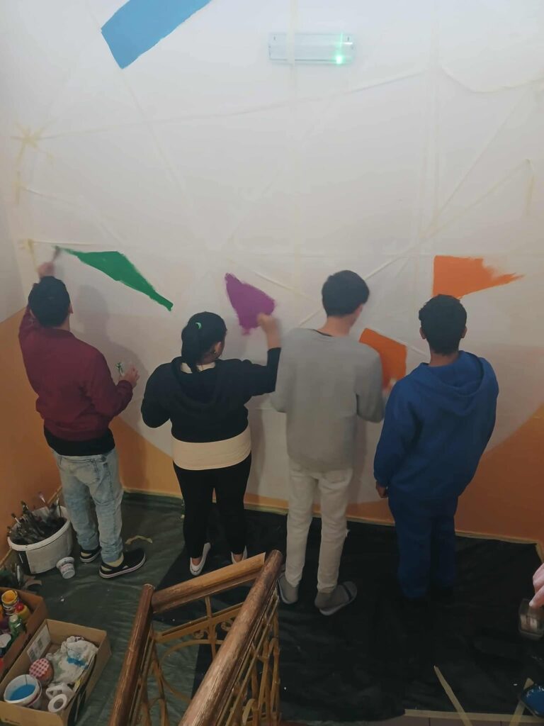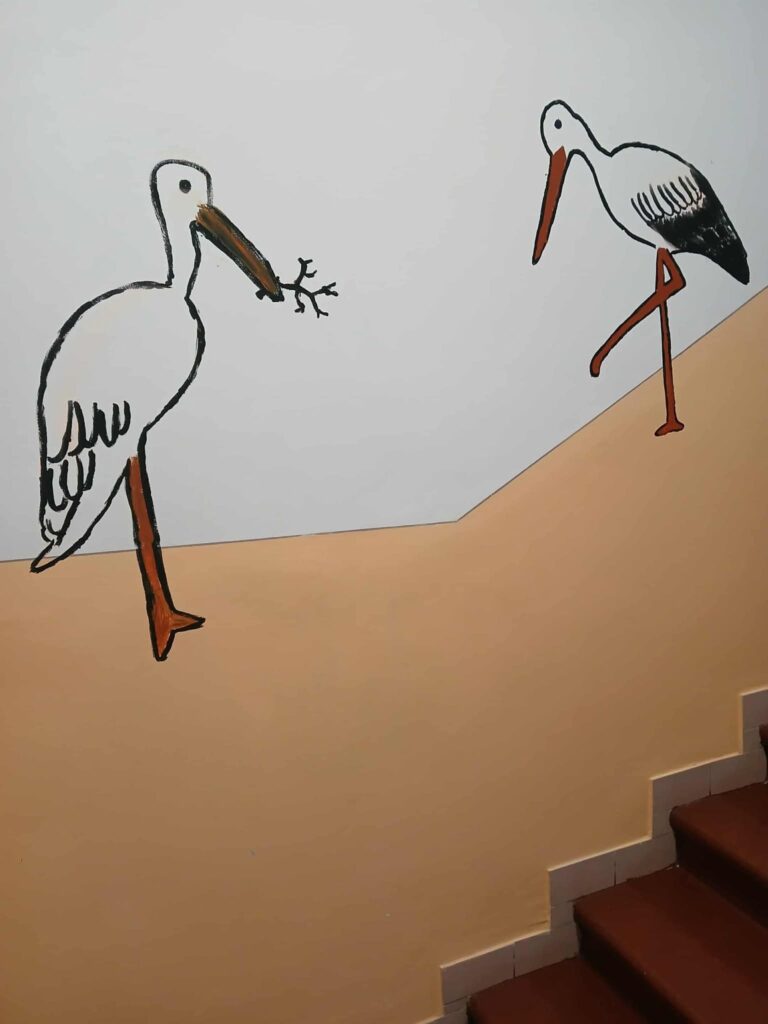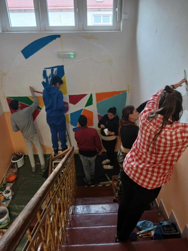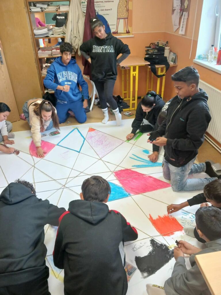 Závěrečný den byl umělecký – společně se malovalo na školní zeď, kde vznikla krásná mandala s motivem čápů, která bude všem připomínat nejen projekt, ale i sílu tvořivosti a spolupráce.