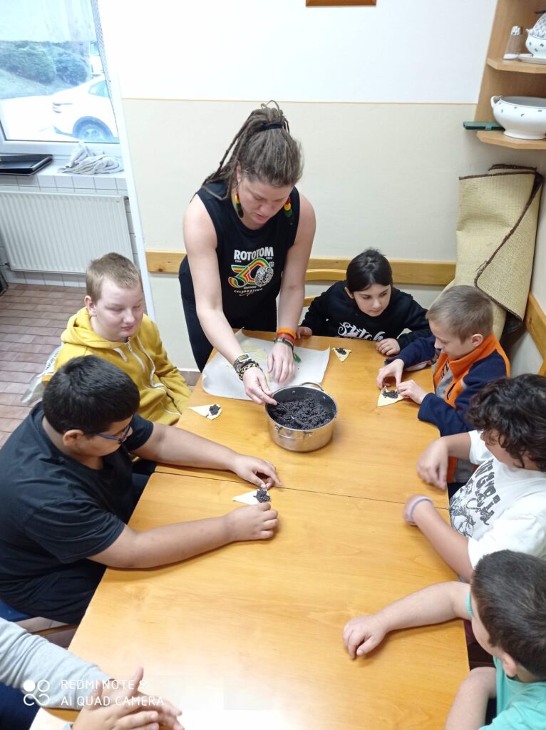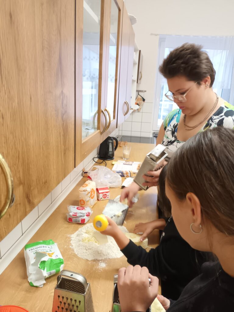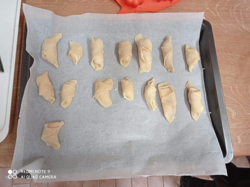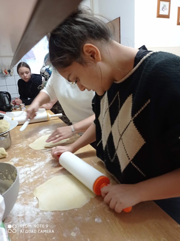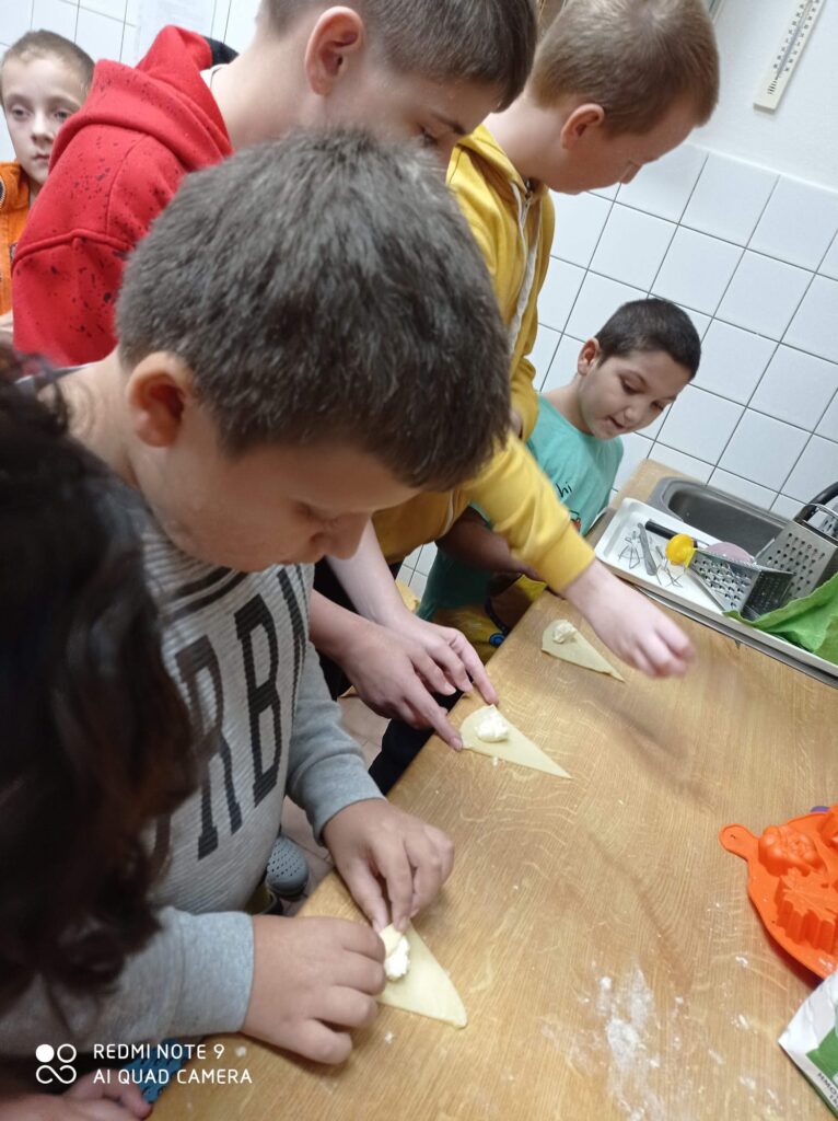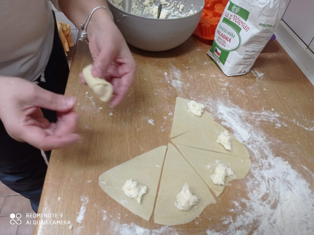 V závěru dne jsme se pustili do pečení svatomartinských rohlíčků s tvarohovou a makovou náplní. Práce šla všem pěkně od ruky, celá třída voněla po čerstvém pečivu a výsledek stál opravdu za to. Jen škoda, že přes obrazovku nemůžete okusit, jak báječně chutnaly.