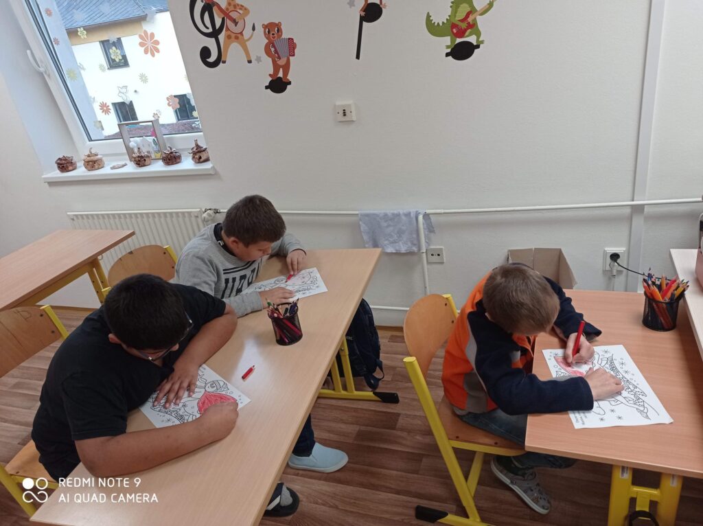 Poté si žáci mohli vybarvit omalovánku s motivem sv. Martina a připomenout si tak jeho příběh i tvořivou formou.