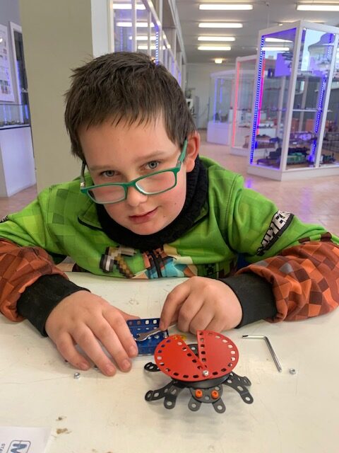 Po dokončení dílničky následovala prohlídka samotného muzea. Děti se seznámily s historií stavebnice Merkur, prohlédly si zajímavé modely a dozvěděly se mnoho nových informací o technice a vynálezectví.