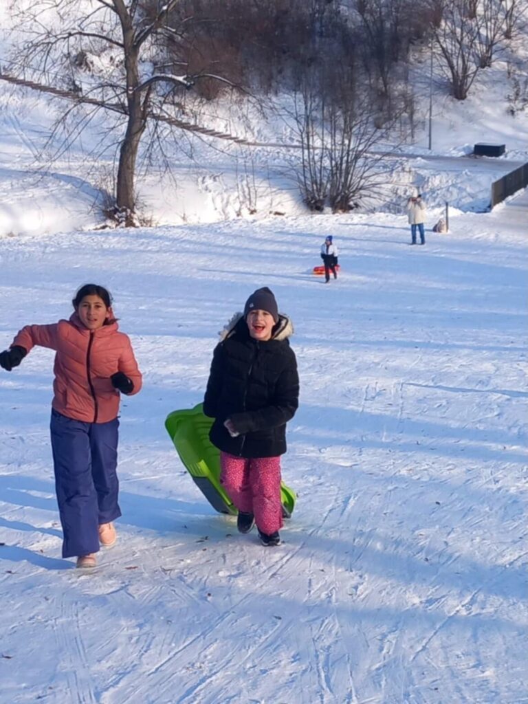 Ve středu 7. ledna 2026 se žáci 1. třídy vydali na zimní radovánky v podobě sáňkování. Využili jsme pěkného zimního počasí a dostatku sněhu, který děti velmi potěšil. Na svahu panovala veselá nálada, nechyběl smích, závody na saních ani opatrné první jízdy. Děti si dopoledne užily pohyb na čerstvém vzduchu a domů se vracely s úsměvem na tváři a spoustou hezkých zážitků.